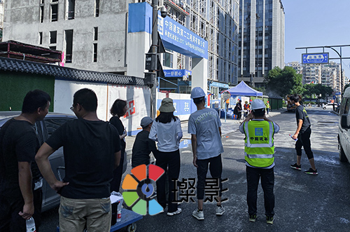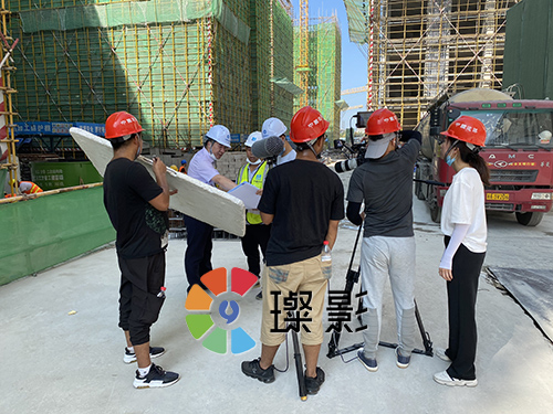 定稿后,我們出了通告和選定了場景,就輪到了導演拍攝組出場。盛夏的工地,炎光漸旺,也絲毫沒有減消我們拍攝的熱情。
